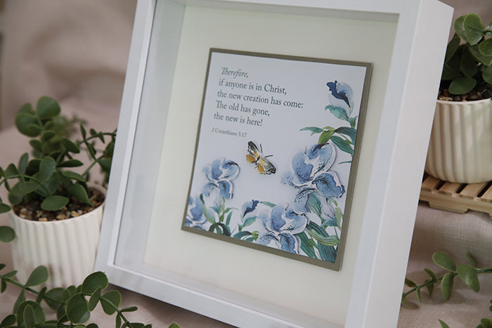 Celebrate the joy of new beginnings with our 'New Life in Bloom: 2 Corinthians 5:17' 3D Handmade Card. This card is a vibrant testament to spiritual rebirth, featuring a captivating watercolor of blue salvia wildflowers—a symbol of growth and resilience. A remarkable yellow and black butterfly, brought to life with a raised 3D effect, flutters above the blooms, representing the transformation and freedom found in Christ. The verse from 2 Corinthians 5:17, 'Therefore, if anyone is in Christ, the new creation has come: The old has gone, the new is here!' is beautifully integrated into the design. The layers and textures of this handcrafted card create a truly immersive experience, inviting you to reflect on the beauty of renewal. Give this card as a cherished reminder that with faith, every moment is an opportunity for a fresh start and a new life.