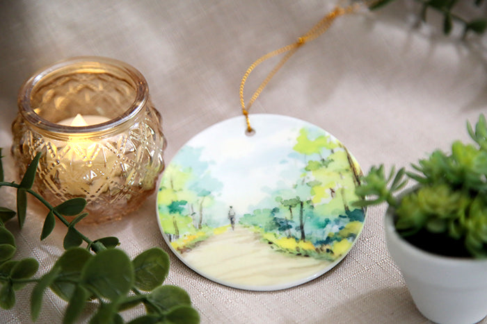 Journey through life's seasons with our beautiful With You Always Ornament. This piece features an original watercolor scene of a vibrant path lined with colorful, blooming trees, capturing the hope and new beginnings of a spring day. It's a perfect gift for anyone starting a new chapter, or simply to show you care.